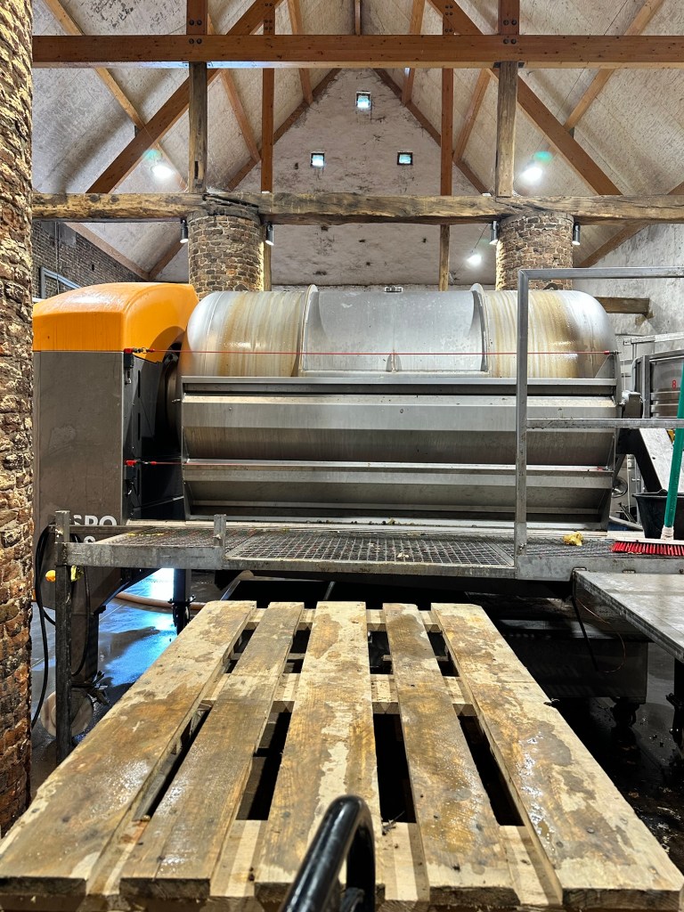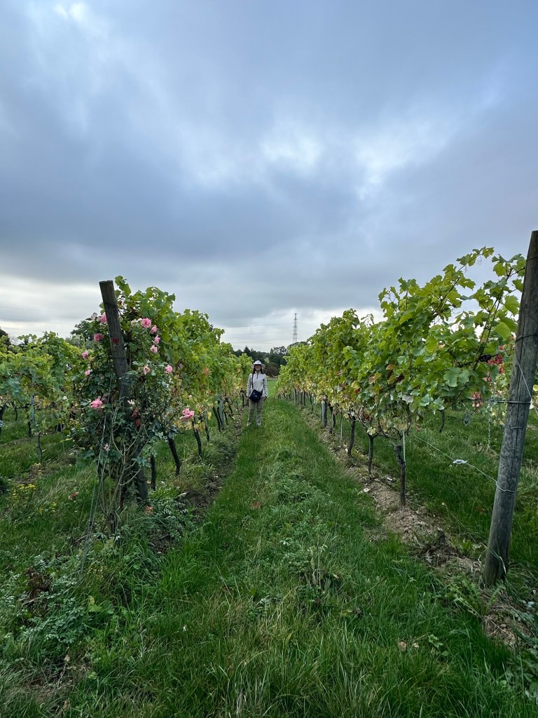 Two interesting mentions during the tour. First, the “buckets” used to hand pick grapes. Simple looking, but the tactic is to have small buckets that allow for water to flow through and not crush the grapes on the bottom. Since Belgium is known for its rain, grape picking happens regardless of rain or sunshine. So the buckets can’t accumulate rain water as they are getting picked, loaded in the truck and stored prior to crushing. I appreciated their use of low tech and high tech methods. The bottling process (either in bottle or in barrel) was high tech and beyond my pay grade. Second, is at the end of each row are rosebushes. Originally long ago, the rose bushes were planted to help the vineyard know if that row of grapevines was healthy and thriving. While not really needed now due to organic growing techniques, the rose bushes are tradition and liven up the vineyard.