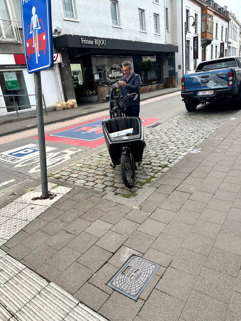 Today was a high of 60 with no rain, lots of clouds with the sun poking through on occasion. One of the nice things about Brussels is the access to bike paths and trails as well as being able to ride bikes on the street or sidewalks. While it still feels scary with cars zooming by, bike riding is a big part of the traffic pattern here. Many people bike to work or school. It is ubiquitous. As a driver, not accustomed to bikes and bike lanes everywhere, you really have to be very cautious. In some parts of the city bike lanes have their own stoplight system. It is complicated! At NATO there is a very large bike parking area. My guesstimate is there are over 300 bikes on any given day.