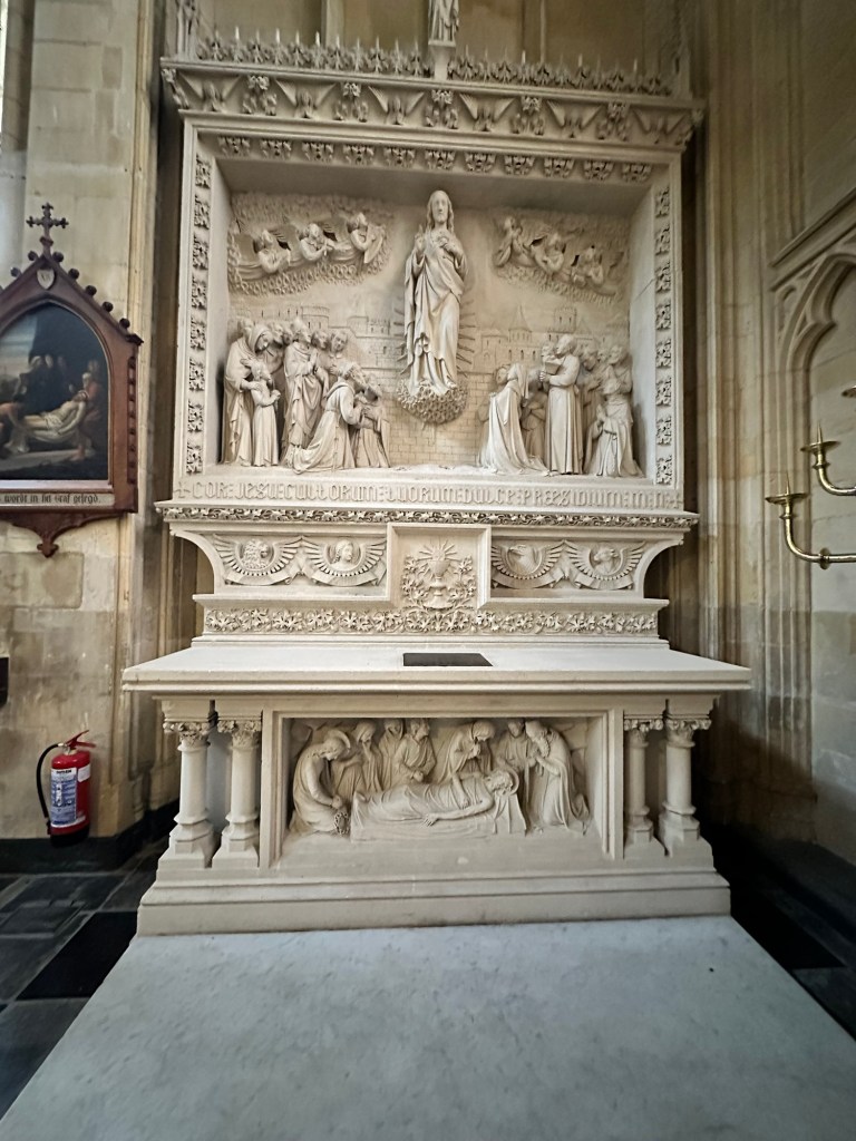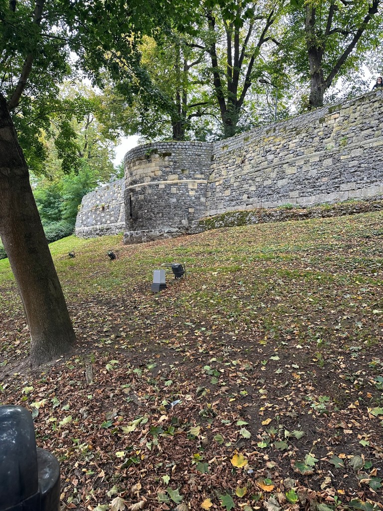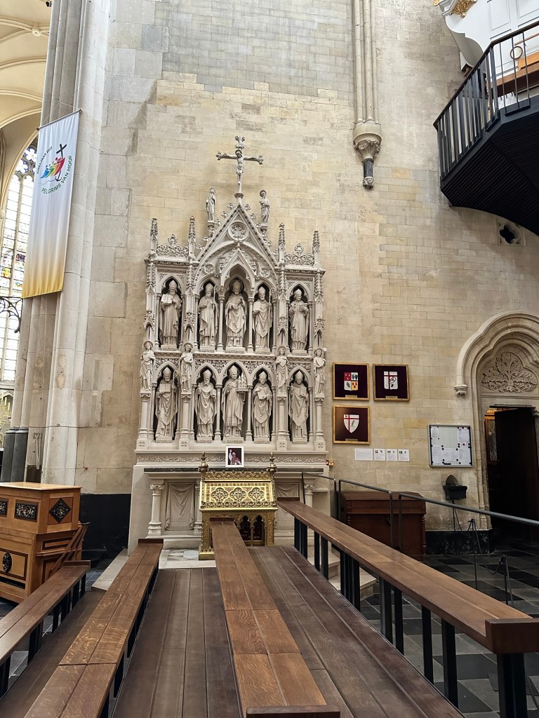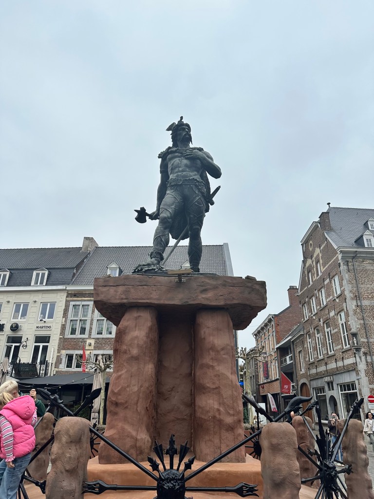 We arrived Saturday around noon and walked the streets to the town square. We enjoyed lunch at a cafe in the square with entertainment from the beautiful church bells that rang the hourly song and a ding at each quarter. Lunch was amazing, I had the baked camembert with figs, rosemary and home baked crusty bread, I should have taken a photo. Scott ordered a trio of burgers, sort of like a slider but really a meatball on a bun with three different cheeses and sauces, looked good. Connor was happy with his pasta bolognese. As we ate, there were three different Belgium “scout” troops selling waffles as a fundraiser in the square. One set of uniforms looked similar to Connor’s while the other two were blue and very different. Also in the square was a large bronze statue of Ambiorix, the Belgian national hero. He lead the resistance movement against Julius Caesar.