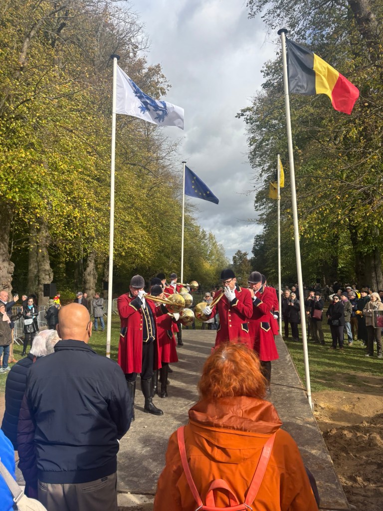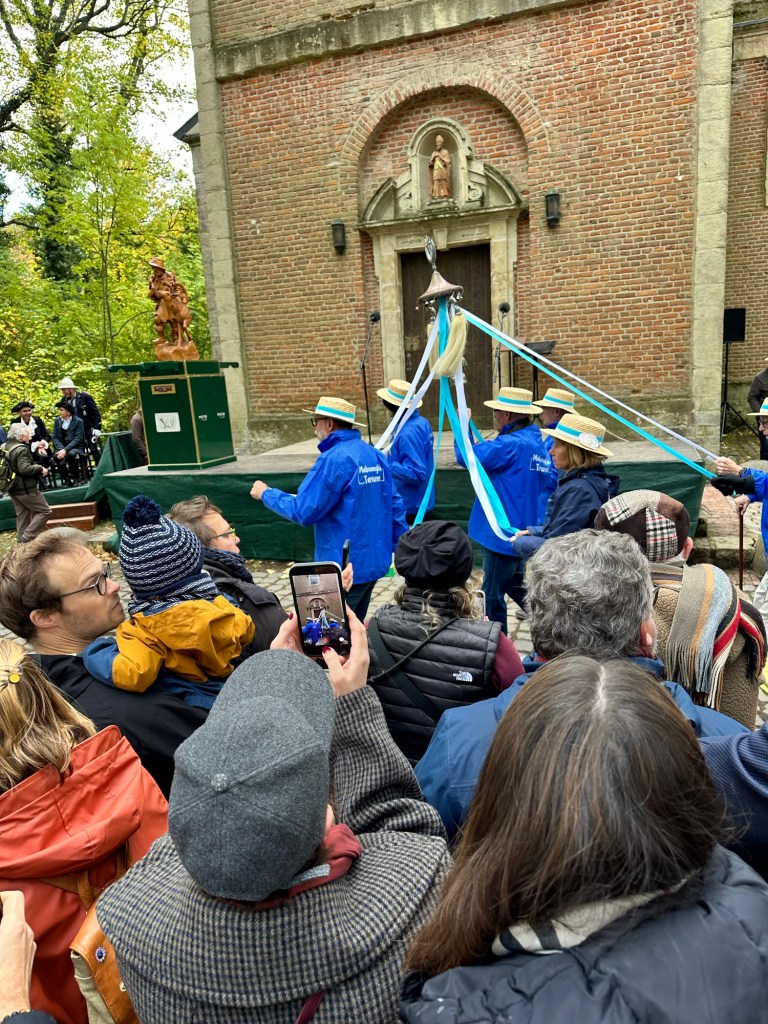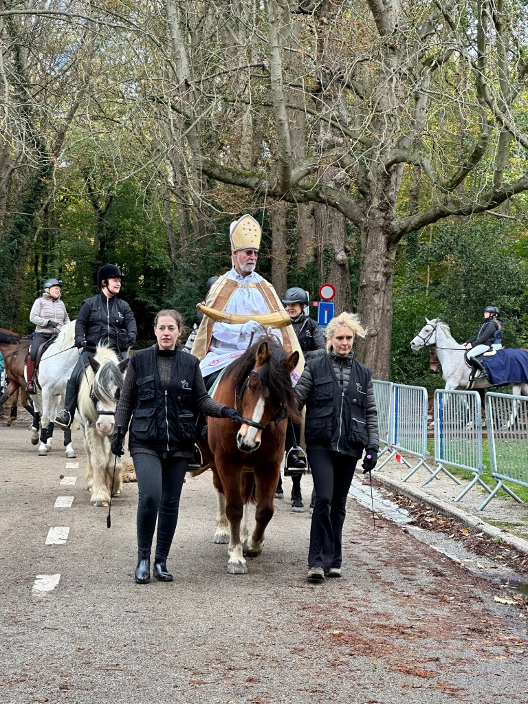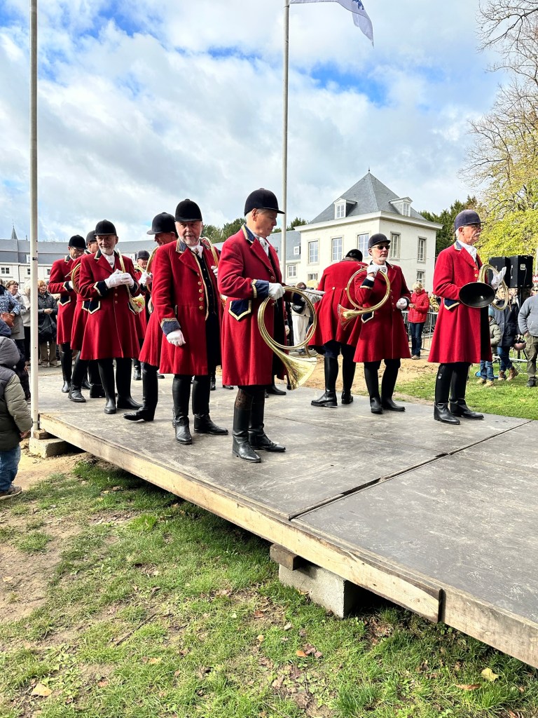 Sunday we went back to the village for the St Hubert’s Day Celebration and the blessing of the pets. What a fun and unique treat this event was. Pets of all shapes and sizes were in attendance along with the Bishop dressed in period robes, horse drawn carts and wagons and a brass horn section. The pets lined up outside at the museum near the park and processed through the village to the chapel, circa “4th quarter of the 17th century” as noted by the Dutch documentation. The service and blessing were both in Dutch, so while we didn’t understand the detail, we were able to enjoy the broader message, the service and the people and pet watching. We all knew when to say “Ahman”. Once the procession pets were blessed by the Bishop, which included a water sprinkle spray, attendees were able to walk by the Bishop for a blessing as well. The brass horn players were poised across the field and played different tunes throughout the service. At one point the music sounded exactly like the music on the bus in the movie Sixteen Candles, take a minute to think about that scene. We got a good laugh. Bucky enjoyed meeting other dogs, horses, rabbits and a few other pets held in crates and backpacks.