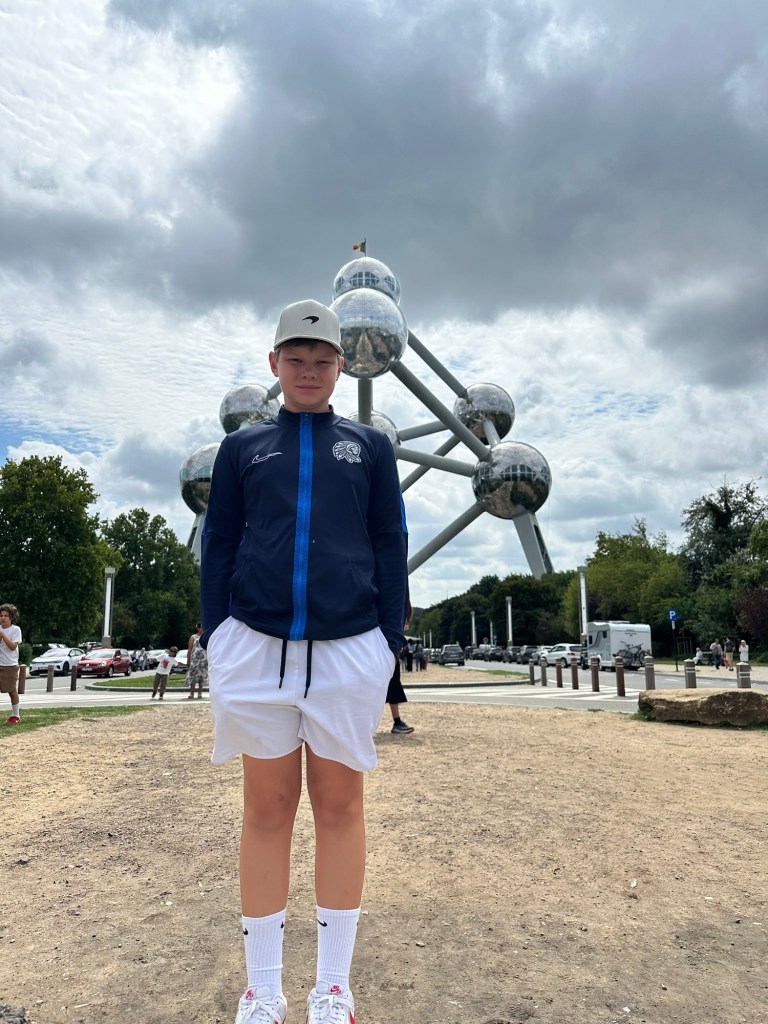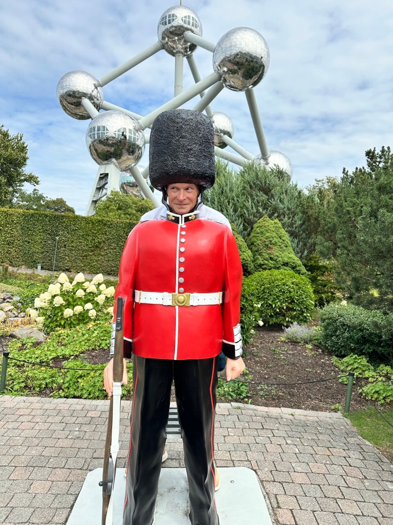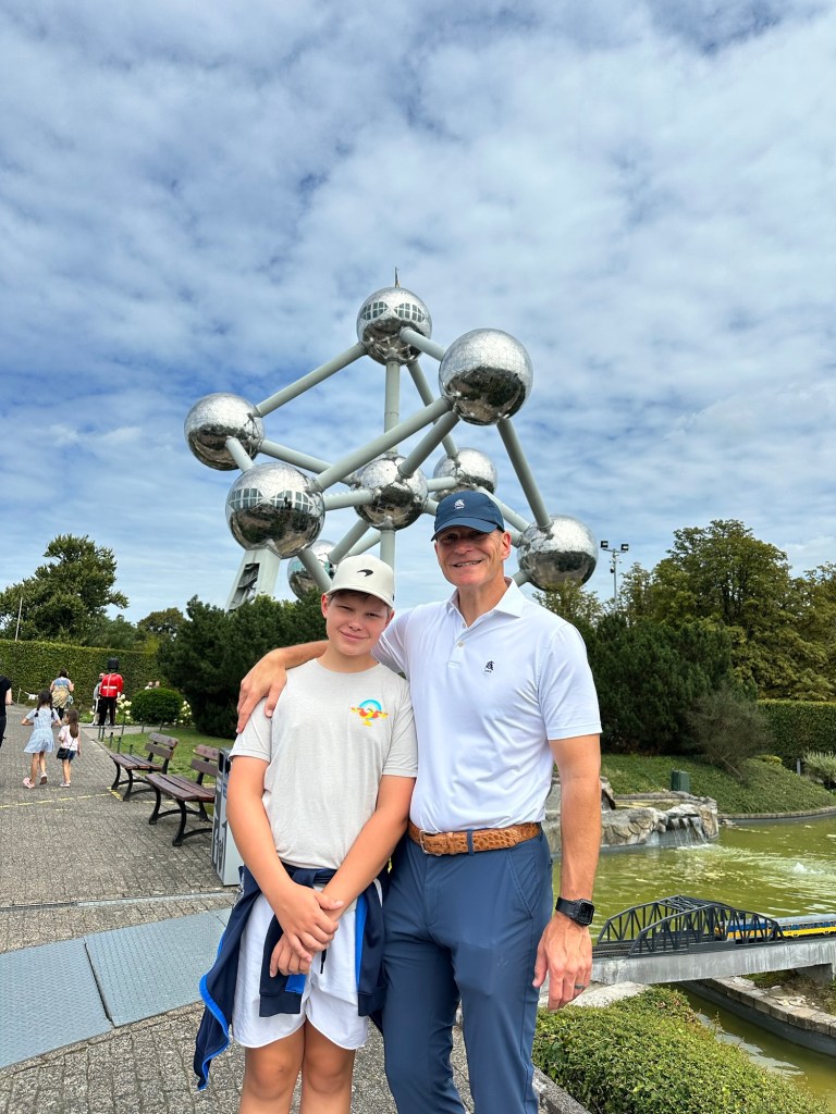 Summer 2025, the second half, was full of go go go travel and exploration. As this information is 6-8 weeks behind us now, I am going relive our travels and make a post for each destination, as they each were so different. Since Connor didn’t start school until the end of August, we had almost a month to see Europe. We have a lofty goal of visiting all 31 NATO countries, not sure if that is achieveable. So after a day or two of jet lag recovery in Brussels when we landed July 31, we first started with local tourist attractions – The Atomium and Mini-Europe. Connor and I took a bus and a train to get this northern part of Brussels. Scott met us from work for lunch and touring. The Atomium was built for the World’s Fair in 1958 as the centerpiece. At the time, it was a modern marvel showcase. It was fun to explore inside which included strobe lights, tunnel passages and mementos from the World’s Fair.