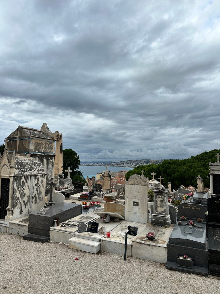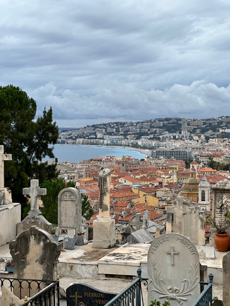 First day we spent touring on scooters along the Promadade de Anglais and then rode up to Castle Hill. The cemetary and the view were the highlights. The cemetary was the most beautiful I have ever seen as well as the best maintained. Ancient family plots are still used in modern times and are adorned with flowers and plants to honor loved ones. The architecture and style of the monuments reminded me of cemeteries in New Orleans, but taken care of much better. We made it to the top of Castle Hille enjoying the sweeping views along the way. At the top we took a break for a “snack”, as the signs conveyed, of beer, coffee and a messy but good nutella crepe.