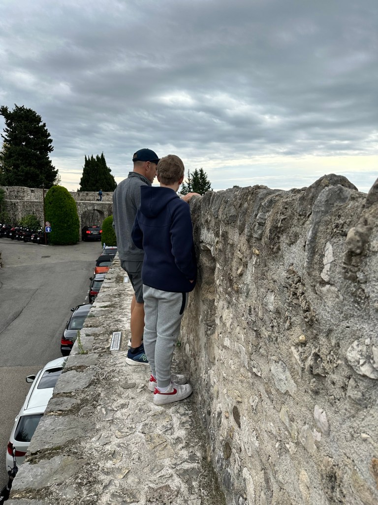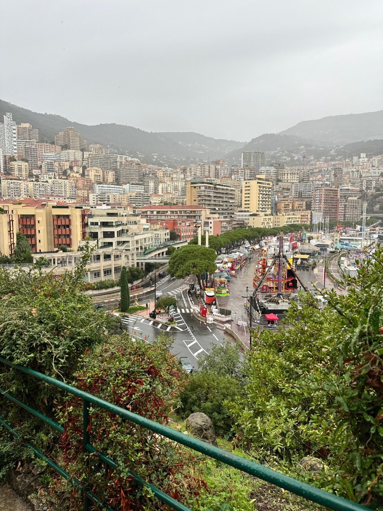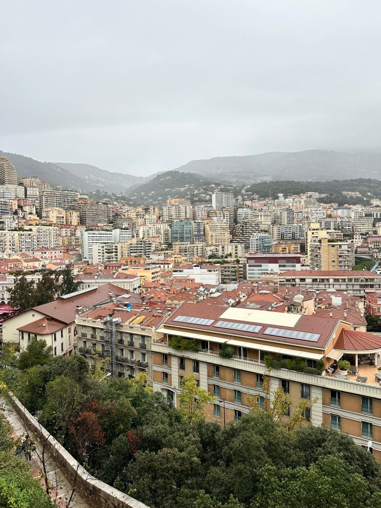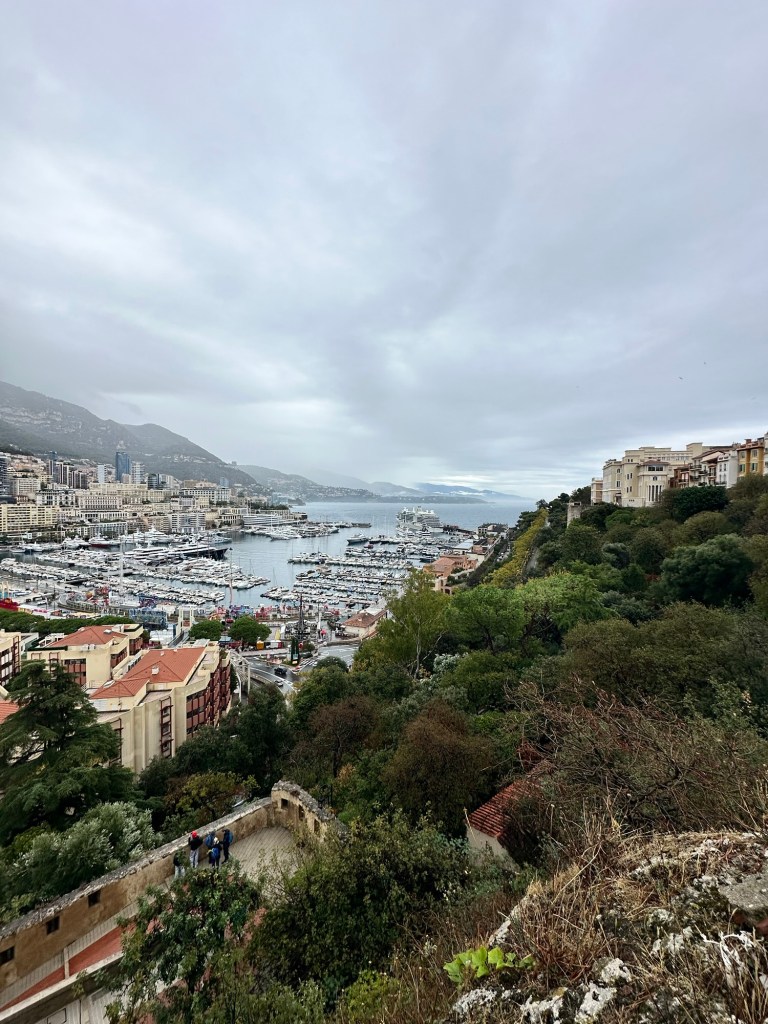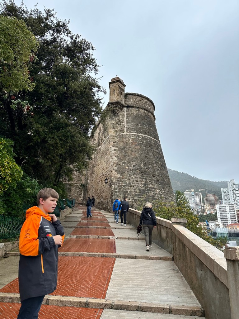 Our second day was rainy and cloudy but did not stop us from getting on the train to Monaco. Monaco was Connor’s request to visit so we could see the small country but mostly so he could see his favorite, race cars! The 20-minute train ride was short but allowed for beautiful views (everything in Monaco is beautiful including the trash cans!) along the coast. We spent the day walking the palace grounds, the beautiful city and taking in an F1 racing tour of the circuit. We enjoyed a nice lunch taking a break from the rain. The F1 tour ended at the the Casino Plaza with especially beautiful and interesting artwork along with high-end shops. We walked through the mall and had a coffee sitting below large scale beautiful chandeliers. Princess Grace, the American actress who married her prince, is referenced throughout the municipality. Everyone speaks French in Monaco, which makes sense as it is run by the French government as a part of the agreement that was cast long ago between France and Monaco. We took the train back to Nice and found a place for dinner before heading back to the hotel. As with the night before, we found a great gelato shop, which we devoured as we walked back through the historic area.