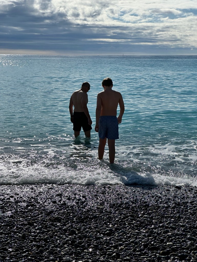 We arrived in Nice on a beautiful day and checked into our hotel located on the Promanade de Anglais overlooking the French Riveria. It was beautiful! We went to rooftop bar overlooking the Mediterranean with lots of people and car watching. The water us a unique shad of blue, so beautiful, difficult to fully describe. The view was so lovely that we decided sitting and watcing should be our afternoon activity. Once the sun went down I pushed us to head to a local restaurant in Nice Ville, the historic part of the city. We walked and enjoyed the evening sights. We ate at a French brasserie outside, which unfortunately always poses the smoking issue. I enjoyed our dinner, Connor and Scott struggeled a bit to find something, let’s just say I am more adventurous with food.