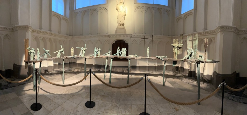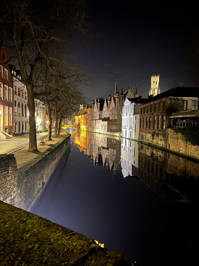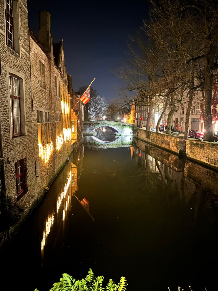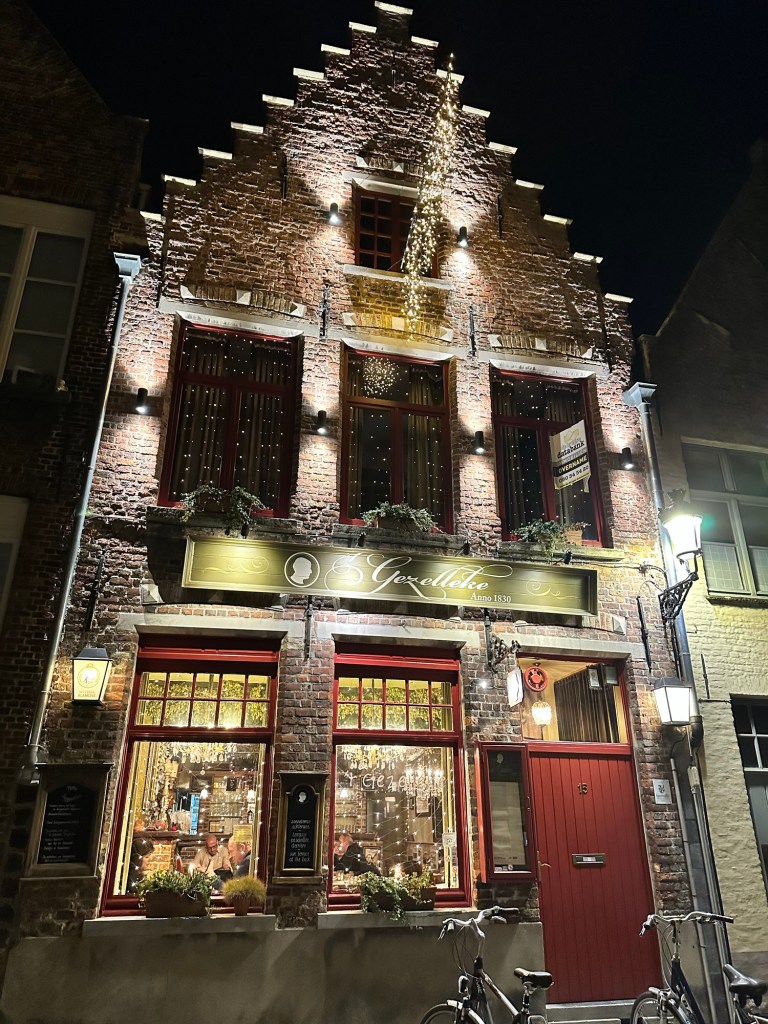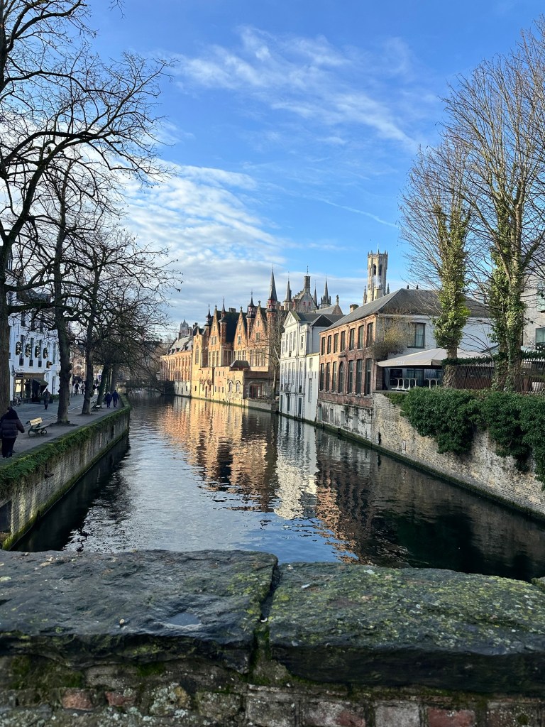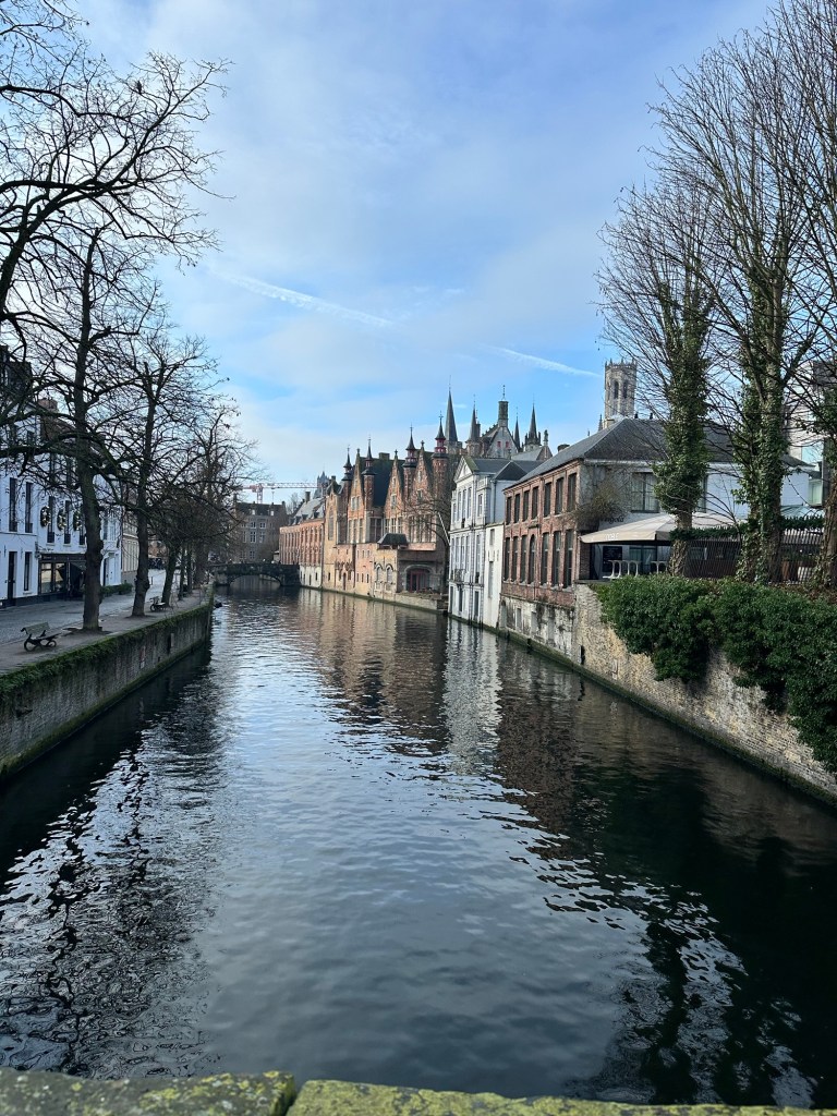 We visited The Church of our Lady, which dates to the 13th century. Many interesting points to note about this church, first it is the tallest structure in Bruges and the 3rd tallest brick-work church tower in the world! The art this church houses is historic and beautiful. Of note is a Madonna and child white marble sculpture by Michelangelo. But what I found the most stunning was the room size bronze depiction of the Life of Christ, the Passion Triptych, from the 16th-century. The artwork depicts the life and passion of Christ, including the Crucifixion, Flagellation, and Descent into Limbo. The artistās portrayal is very unique, raw and stark against the white chancel backdrop. Sunday morning I was up early with Bucky and went for a long walk through the historic village. We were one of just a few other walkers enjoying the quiet solitude and beauty of the streets and canals as the church bells rang.