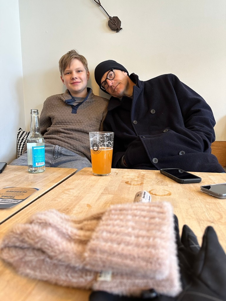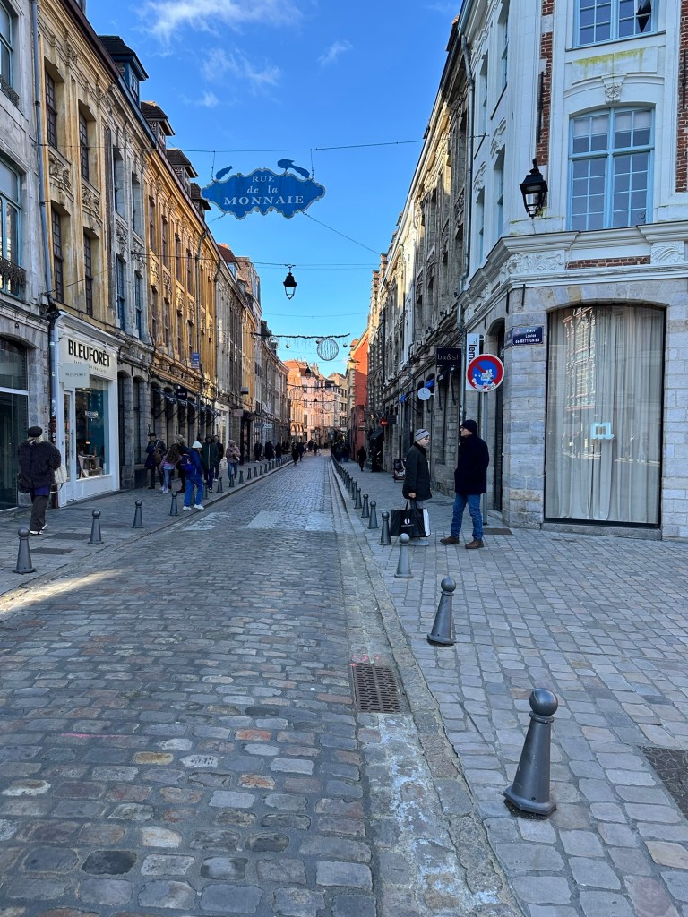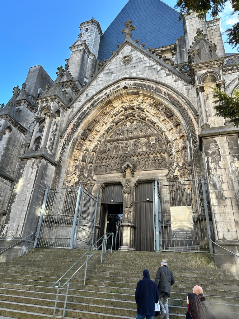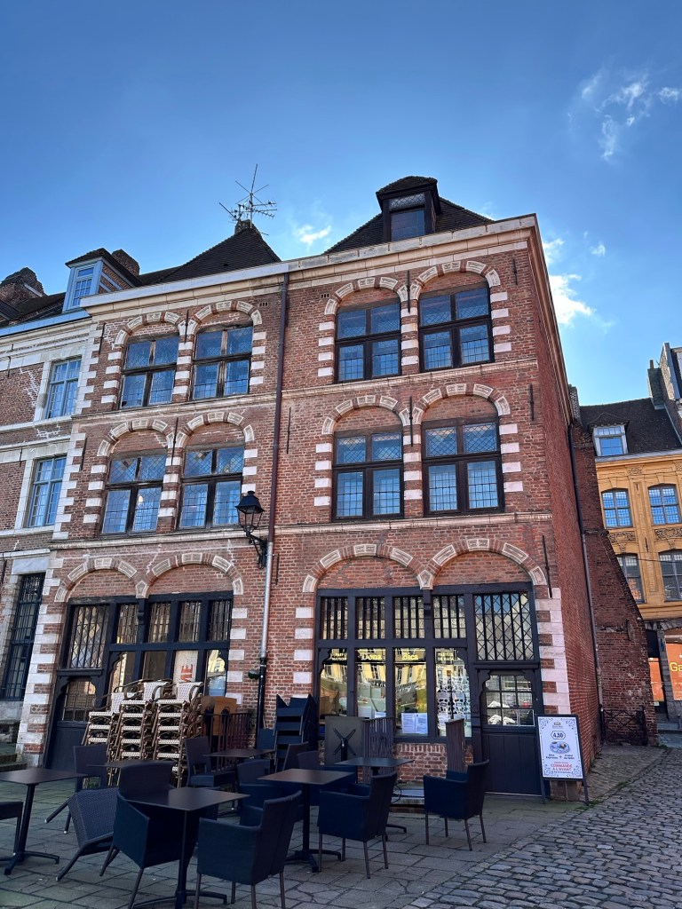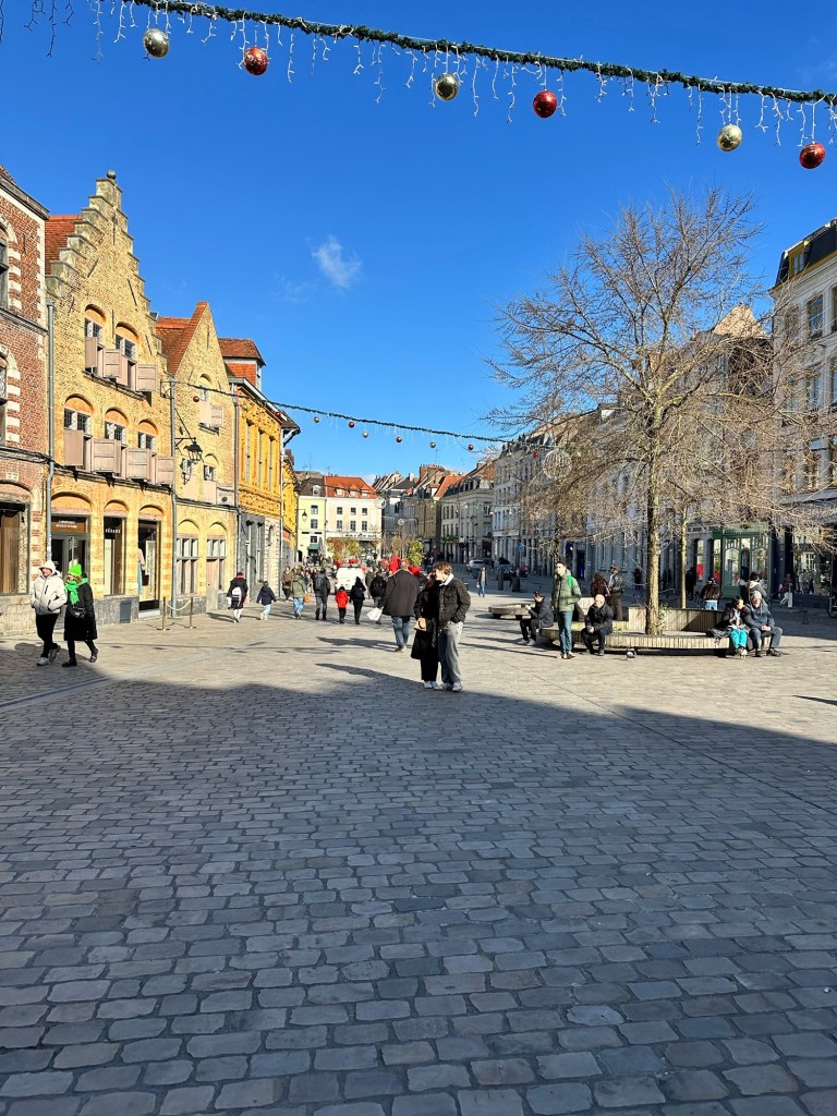 Fast forward a few weeks to Valentineās weekend, we had planned a long weekend to Prague for part of Connorās winter break. Unfortunately Scottās schedule changed and we had to cancel Prague. Scott and I visited Prague many years ago and want to take Connor back; we will figure out a new plan soon. Instead, last minute we decided to go to Lille, France, a 90 minute drive from Brussels just over the Belgium border. The Grand Place was petite but full of lively locals. The historic center seemed less like a tourist spot and more like a local hometown. The shopping was great, I found two pairs of shoes, Connor found two quarter zip sweaters and Scott bought a tie. The food was yummy with a late breakfast at a very popular Boulangerie on Saturday – quiche with the most delicate bottom only crust, banana chocolate chip bread and pain au chocolat (Connorās fav) that we ate while sitting at the fountain in the square near the Grand Place. We were not impressed with the French coffee, although Connor did enjoy his hot chocolate, which was unfortunate as it was very cold and we wanted a warm beverage. On walk about during the day we found a beer tasting room that overlooked the Cathedral, which was quite unique. As with most of the cathedrals, they are built/rebuilt over many different centuries due to budget, varying leaders or war. This Cathedral during its most recent rebuild combined old world architecture with modern art. Very striking and enjoyable to walk through. We didnāt get a lot of pictures while in Lille, but it is definitely a town worth visiting if you are in northern France. Dinner was at a brasserie sitting at the bar with lots of French language and very little English. I got Connor and Scott to be a little bit more adventurous with the selections that we shared – Flemish beef stew and pork shoulder with several cabbage/kraut options, and of course cheese, bread and local beers.